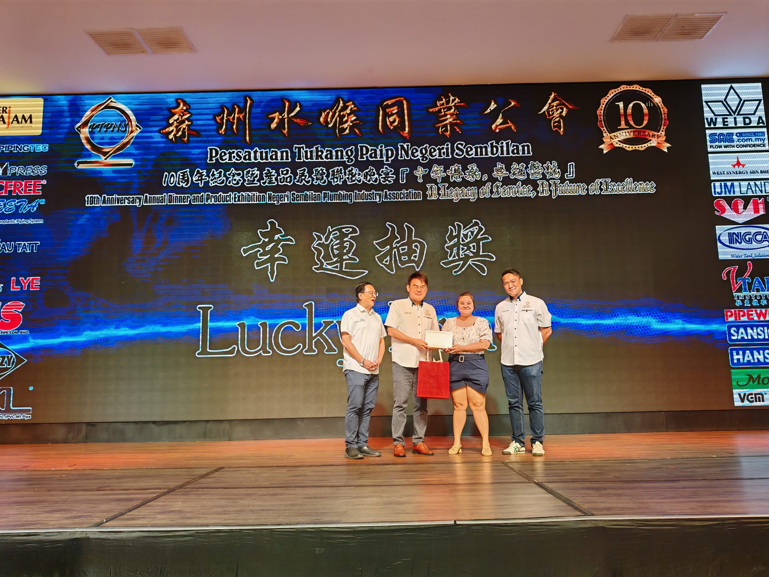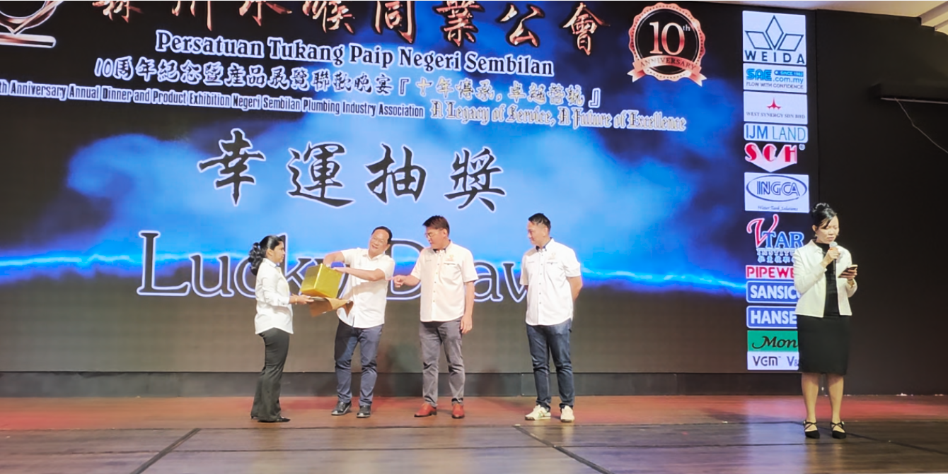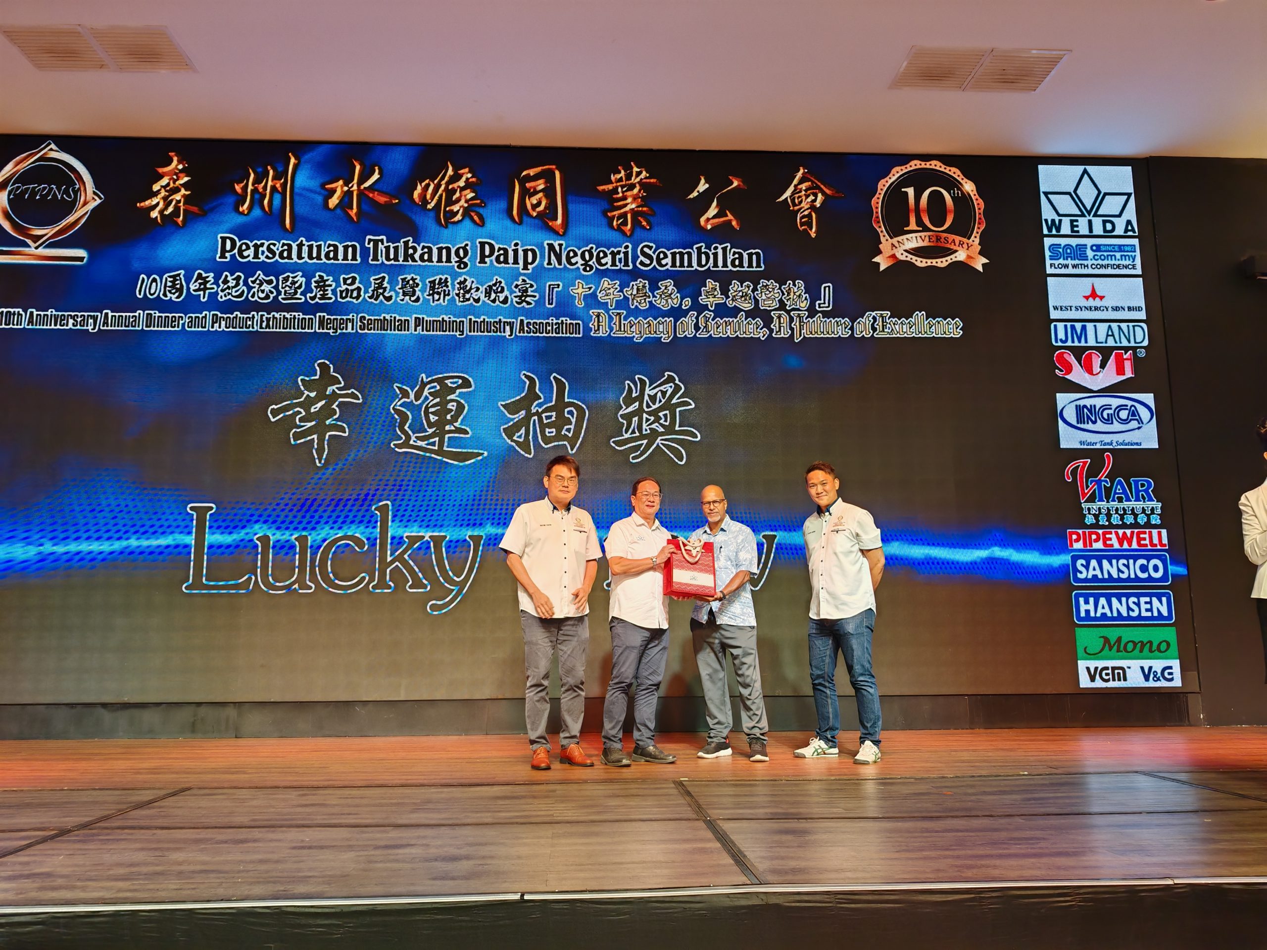 WEIDA was honoured to be one of the platinum sponsors of the Persatuan Tukang Paip Negeri Sembilan (PTPNS) 10th Year Anniversary Annual Dinner & Exhibition, celebrating a decade of commitment and excellence within the plumbing industry. As one of the event’s major sponsors, WEIDA proudly supported the association’s milestone celebration while strengthening connections with industry partners and plumbing professionals across Negeri Sembilan.